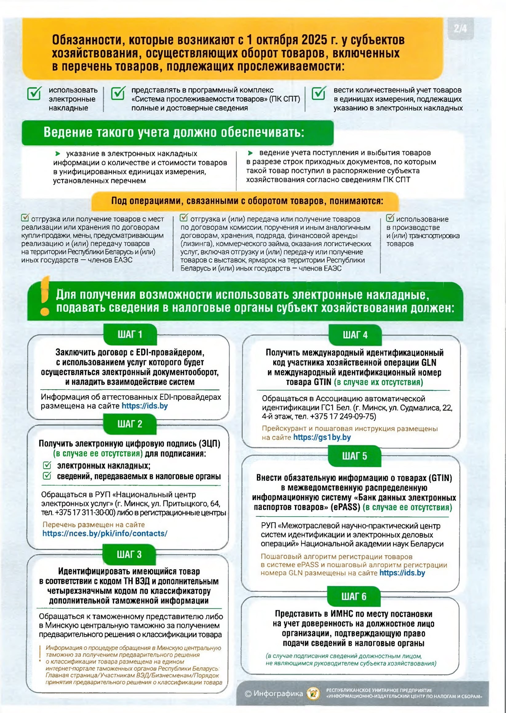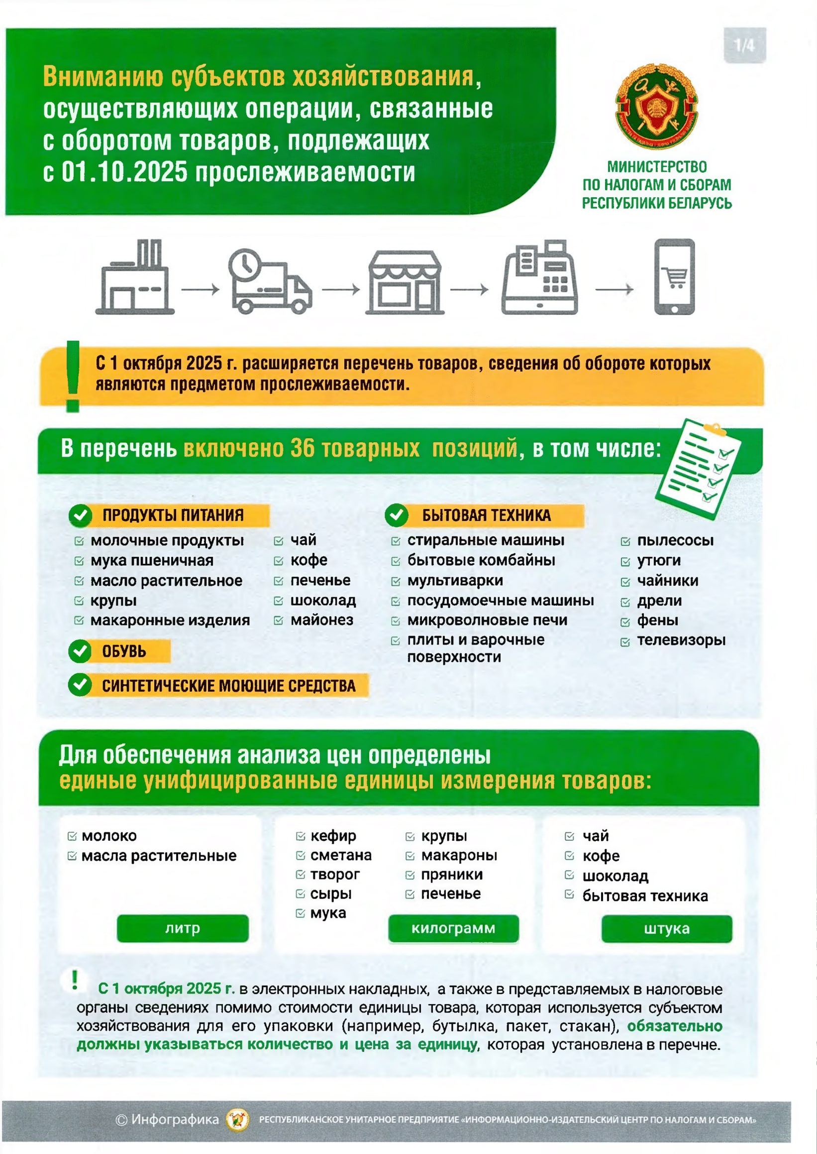 Вниманию субъектов хозяйствования, осуществляющих операции, связанные с оборотом товаров, подлежащих с 01.10.2025 прослеживаемости