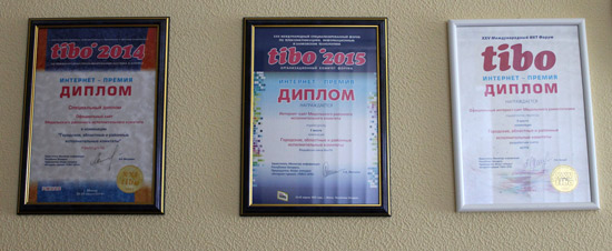 в 2014 году удостоен специального диплома в номинации «Городские, областные и районные исполнительные комитеты»;