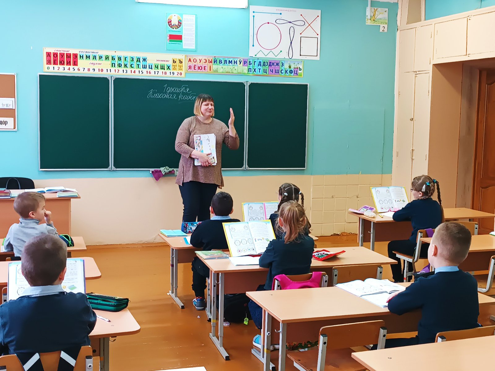 - Специалист Мядельский райЦГиЭ Пусько О.О. проводит беседу с учащимися на тему «Здоровье в каждой тарелке» и профилактике коронавирусной инфекции. В Акции участвуют первые классы (59 человек).