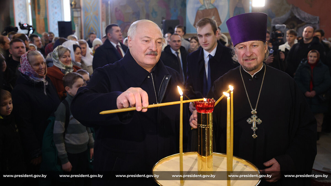 У свята Раства Прэзідэнт запаліў свечку ў лагойскім храме свяціцеля Мікалая Цудатворца