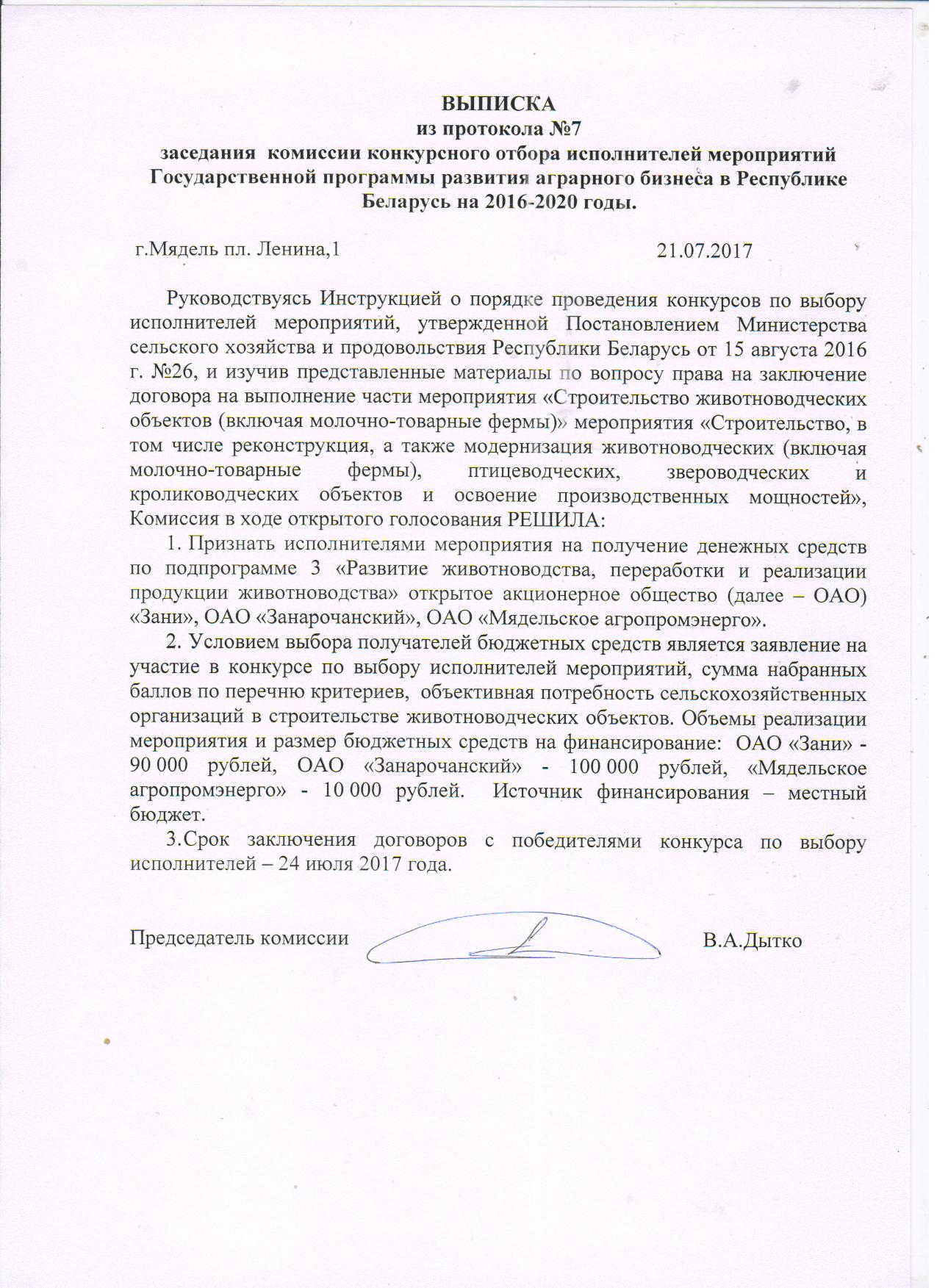 ВЫПИСКА из протокола № 7 по определению исполнителя по конкурсу №3