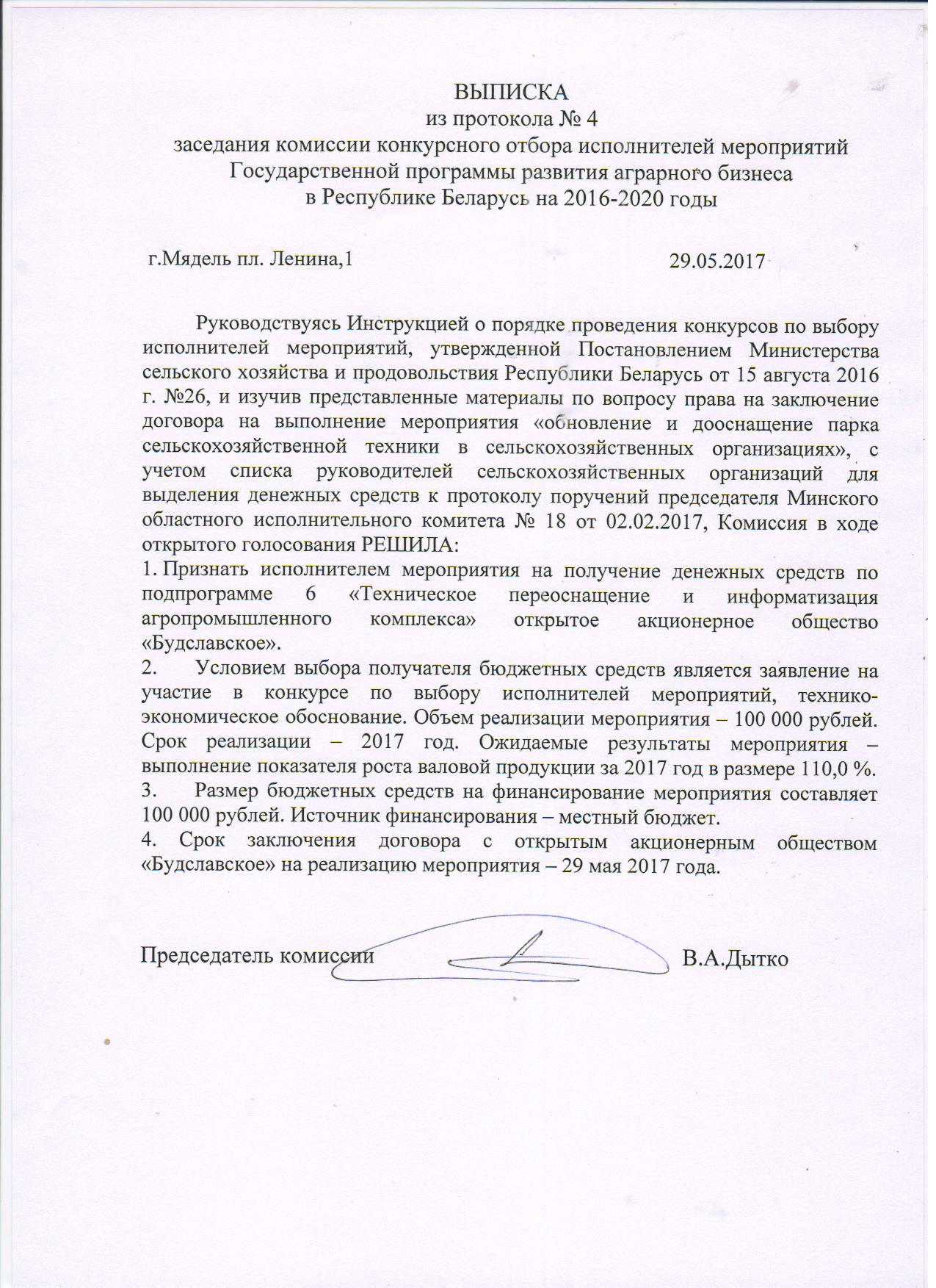 ВЫПИСКА из протокола № 6 по определению исполнителя по конкурсу №2